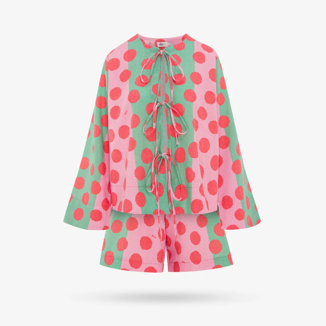 • 2-Piece Set: Shorts & Top• Color: Multi-Colored• Tie-Up Top with Long Sleeves• Relaxed Shorts with Elastic waistband• Medium weight fabric• Each piece is unique and each item might have different colors or layout as a result.