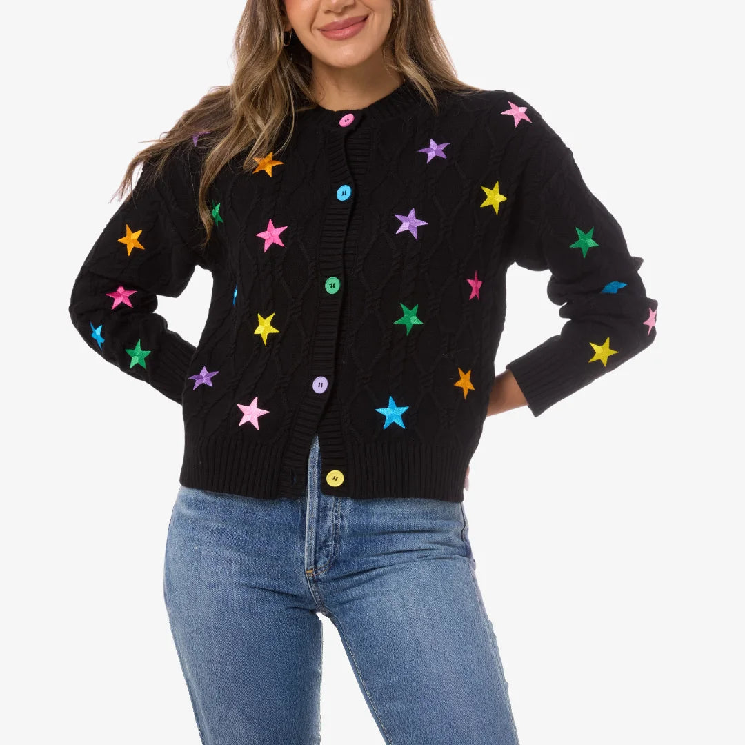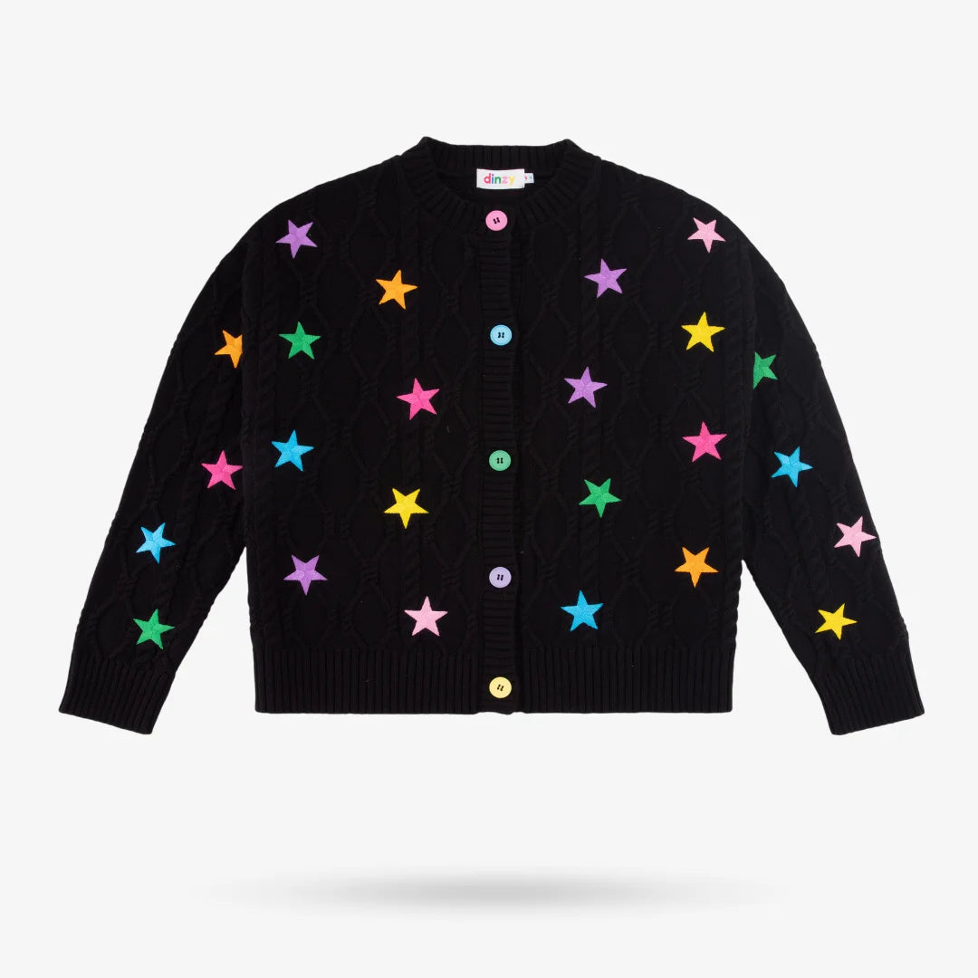 • Color: Black with Multi-Colored embroidery• Cotton Knit• Round Neck with Colorful Buttons• Long sleeves with ribbed cuffs