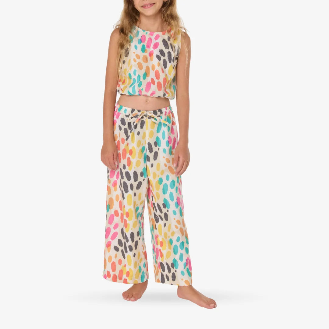 • 2-Piece Set: Top & Pants• Color: Multi-colored• Sleeveless Crop Top with elastic• Loose fit pants with adjustable elastic waistband with drawstring• Each piece is unique and each item might have different colors or layout as a result.