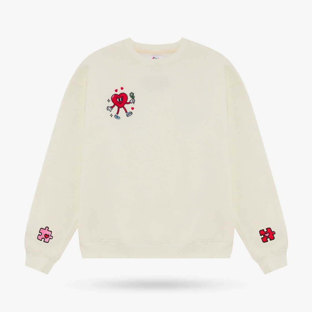 Premium quality, light-weight cream colored oversized sweater with fun and colorful embroidered icons