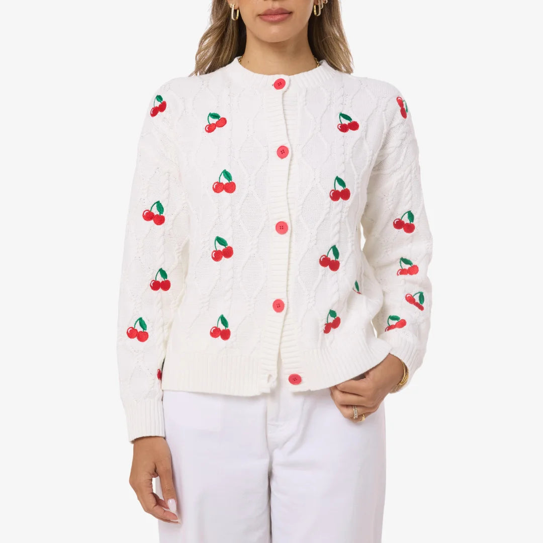 • Color: White with Multi-Colored embroidery• Cotton Knit• Round Neck with Red Buttons• Long sleeves with ribbed cuffs