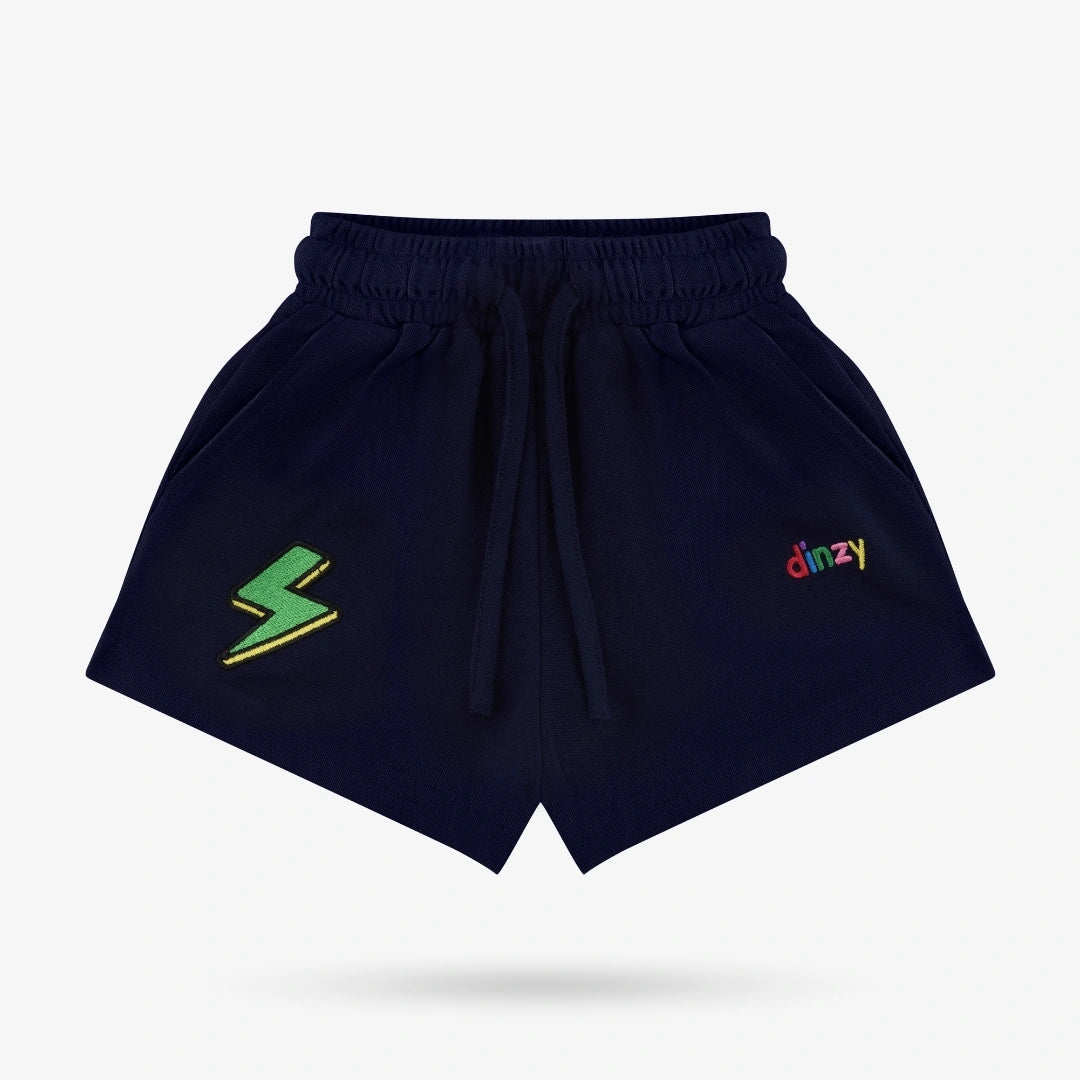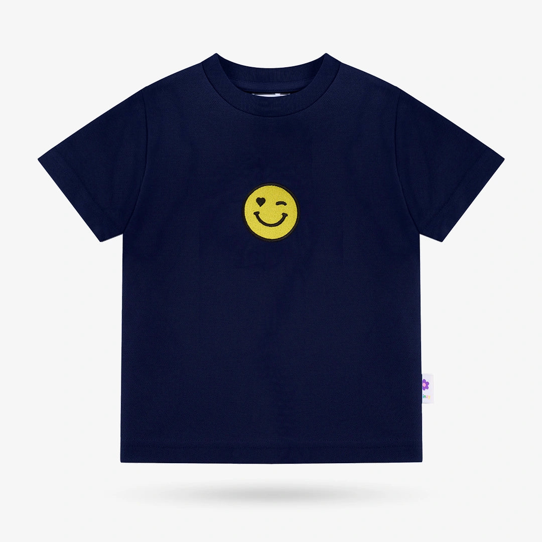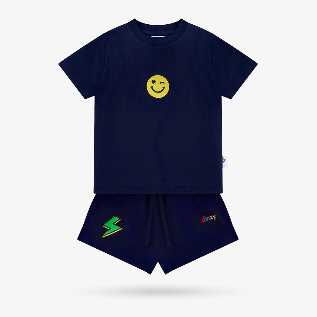 • 2-Piece Set: T-Shirt & Shorts• Color: Navy Blue• 100% Cotton Piqué• Shorts have drawstring• Side Pockets on shorts• Multi-colored embroidery
