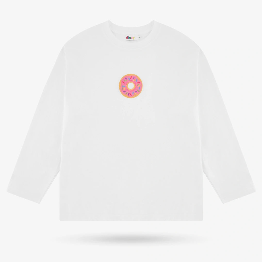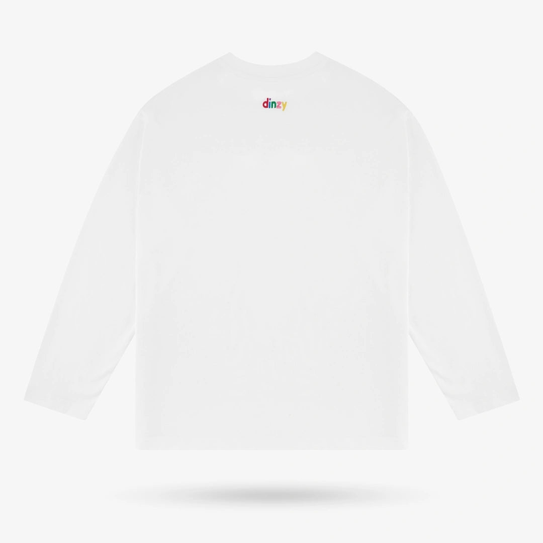 • Color: White• Soft cotton• Crew neck• Long sleeves• Multi-colored embroidery