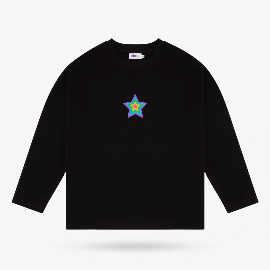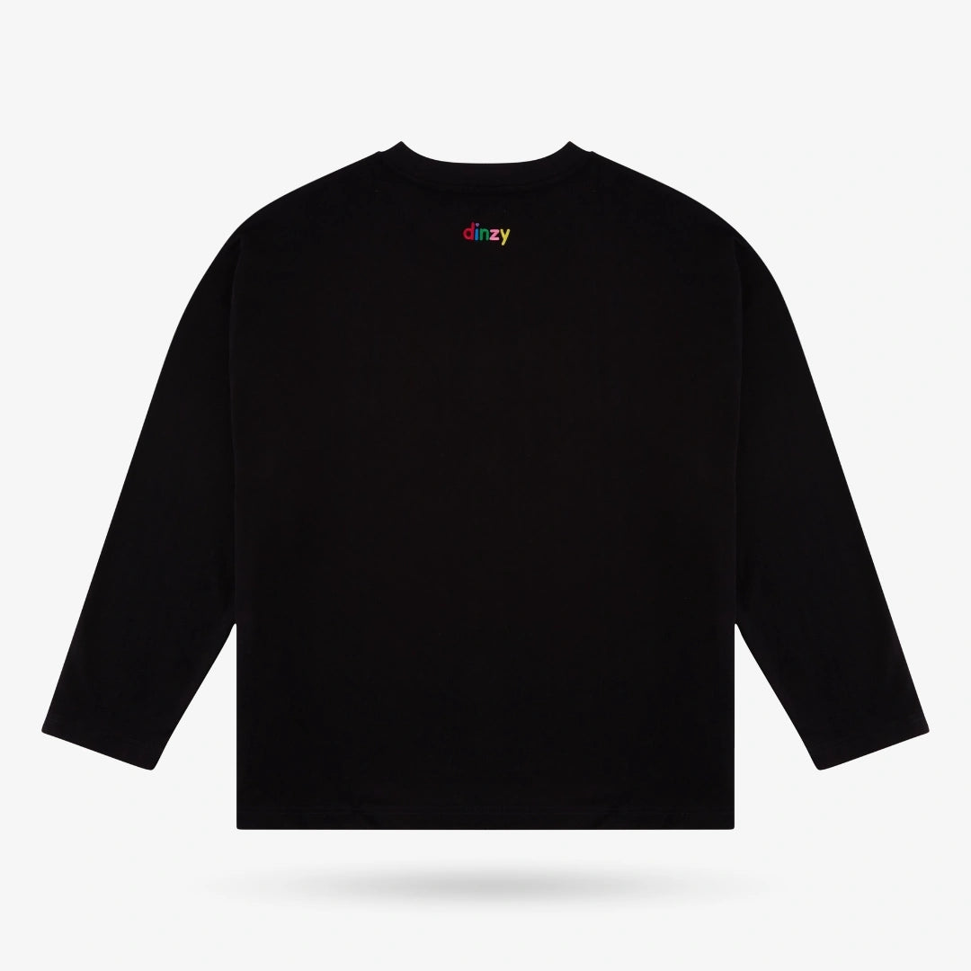 • Color: Black• Soft cotton• Crew neck• Long sleeves• Multi-colored embroidery