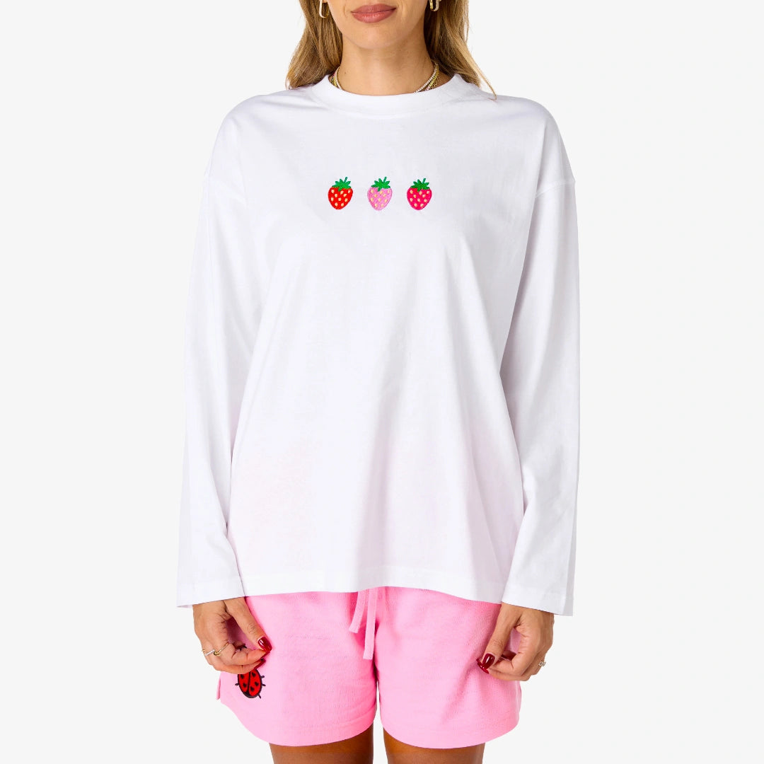 • Color: White• Soft cotton• Crew neck• Long sleeves• Multi-colored embroidery